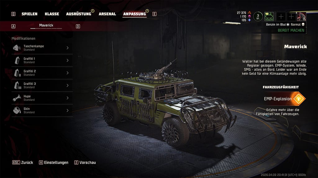 Natürlich darf aa der kosmetische Anteil net fehle. So kenne mir den eijene gewählte Charakter, die Waffe sowie Fahrzeuge freispiele unn meh, mol meh mol weniger großzügig designe. Doch auch wenn der optische Aspekt die Zombies weniger beeindruckt, fühlt ma sich selbst als deutlicher Augenschmaus, während einem Fleischfetze unn Hirnreste entgegenspritze.